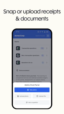 Easily communicate with your accountant on the go! Ask and answer questions, share files and receipts, review your financials, and more.