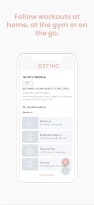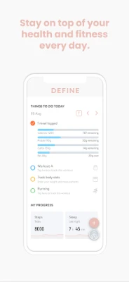 The DEFINE app is your all-in-one coaching hub for strength training, nutrition, and sustainable behavior change — built by Coach Denise, a Board Certified Behavior Analyst and certified strength and nutrition coach. Whether your goal is to build muscle, improve body composition, or simply feel more aligned with your daily choices, this app helps you take action in a way that fits your life.
