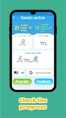 Parents and teachers can check their children's progress in a dedicated section containing statistics such as: average number of exercises completed in a day, average minutes spent in the app, letters already learnt, most difficult letter and most beautiful letter.