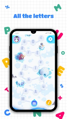 The app is presented in an engaging way for young schoolchildren, in the form of a map containing all the letters of the alphabet, small and capital.
