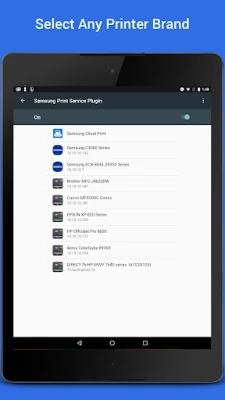 The Samsung Print Service is a system tool that enables wireless printing to Samsung printers and many other printer brands by integrating Mopria technology. Nearly all new printers sold today by Brother, Canon, Dell, Epson, Fuji Xerox, HP, Konica Minolta, Kyocera, Lexmark, Pantum, Ricoh, Samsung, Sharp, Toshiba and Xerox are Mopria-certified to make it easy to print your photos, web pages, documents, coupons, recipes and files from your favorite apps. You can even control print settings including color, number of copies, paper orientation and double-sided printing.